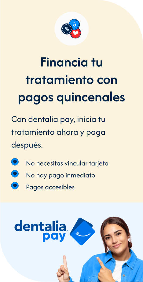 El descuento promocional aplica en los siguientes kits de endodoncia: 1) ENDODONCIA UNI-ENDOPOSTE-CORONA, 2) ENDODONCIA BI-ENDOPOSTE-CORONA, 3) ENDODONCIA TRI-ENDOPOSTE-CORONA, 4) ENDODONCIA UNI-RECONSTRUCCIÓN RESINA-CORONA, 5) ENDODONCIA BI-RECONSTRUCCIÓN RESINA-CORONA, 6) ENDODONCIA TRI-RECONSTRUCCIÓN RESINA-CORONA, 7) RETRATAMIENTO UNI-ENDOPOSTE-CORONA, 8) RETRATAMIENTO BI-ENDOPOSTE-CORONA, 9) RETRATAMIENTO TRI-ENDOPOSTE-CORONA , 10) APICECTOMÍA CON OBTURACIÓN RETRÓGRADA. Los kits 1, 2 y 3 incluyen los siguientes tratamientos, los cuales pueden cambiar dependiendo del diagnóstico clínico: ENDODONCIA UNIRRADICULAR, ENDODONCIA BIRRADICULAR, ENDODONCIA TRIRRADICULAR, ENDOPOSTE DE FIBRA DE VIDRIO, CORONA ZIRCONIA. Los kits 4, 5 y 6 incluyen los siguientes tratamientos, los cuales pueden cambiar dependiendo del diagnóstico clínico: ENDODONCIA UNIRRADICULAR, ENDODONCIA BIRRADICULAR, ENDODONCIA TRIRRADICULAR, RECONSTRUCCIÓN RESINA, CORONA ZIRCONIA. Los kits 7, 8 y 9 incluyen los siguientes tratamientos, los cuales pueden cambiar dependiendo del diagnóstico clínico: ENDODONCIA RETRATAMIENTO UNIRRADICULAR, ENDODONCIA RETRATAMIENTO BIRRADICULAR, ENDODONCIA RETRATAMIENTO TRIRRADICULAR, ENDOPOSTE DE FIBRA DE VIDRIO, CORONA ZIRCONIA. El kit 10 incluye los siguientes tratamientos, los cuales pueden cambiar dependiendo del diagnóstico clínico: APICECTOMÍA, ENDODONCIA OBTURACIÓN RETRÓGRADA. El descuento promocional para pacientes que cuentan con membresía dentalia aplica de la siguiente forma: 15% con pago de contado, 10% con hasta 6MSI. El descuento promocional para pacientes que cuentan con algún plan dental aplica de la siguiente forma: 10% con pago de contado, 5% con hasta 6MSI. El descuento promocional para pacientes que no cuentan con algún plan dental o membresía dentalia aplica de la siguiente forma: 10% con pago de contado, 5% con hasta 6MSI. El descuento no aplica en aquellos tratamientos que tengan un descuento de plan mayor al 10%. Descuento válido únicamente para compras realizadas en clínicas que operan bajo la marca dentalia® durante el periodo de vigencia de la promoción; consulta de listado de clínicas en https://dentalia.com/clinicas. El precio de los tratamientos señalados puede variar de acuerdo con la ciudad. El descuento promocional aplica al pagar el total del tratamiento señalado en estos términos. Consulta el detalle de tarjetas participantes, condiciones y programas de financiamiento en clínica. El descuento no aplica con otras promociones. Promoción válida hasta agotar existencias. Tratamiento sujeto a valoración médica y viabilidad. Aplican restricciones en financiamiento a meses sin intereses. Vigencia del 18 al 30 de noviembre de 2025.